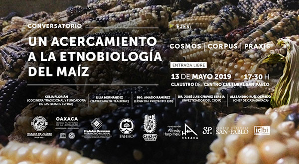 Otro tema será El corpus, impartido por el investigador del Centro Interdisciplinario de Investigación para el Desarrollo Integral Regional (CIIDIR), José Luis Chávez Serbia, y el investigador Amado Ramírez, quienes abordarán el conocimiento técnico de la identidad y biodiversidad de los diferentes tipos de maíces.