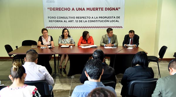 San Raymundo Jalpan, Oax.- A través de la Comisión permanente de Estudios Constitucionales encabezada por la legisladora Delfina Guzmán Díaz, el Congreso del Estado abrió al debate público una iniciativa de reforma en materia de reconocimiento del derecho humano a una muerte digna.