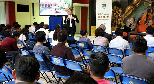 En la facultad de arquitectura Cristof Göebel impartió la conferencia “Planeación urbana en el ámbito global de la ciudad actual”, en donde resaltó que cada ciudad con sus propias características debe seguir conservando su urbanismo y esto solo será posible gracias a la participación de la ciudadanía, jóvenes y gobierno para conservar y rescatar el futuro de la ciudad.