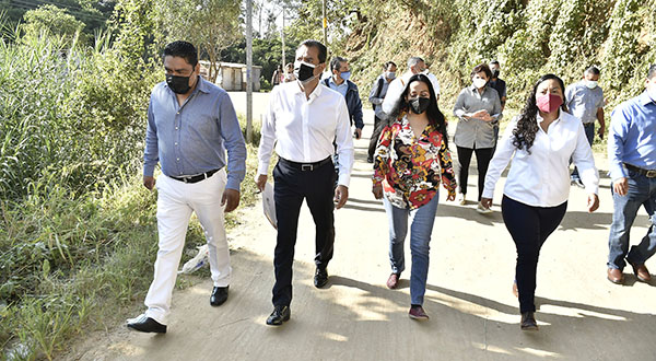 Junto a los regidores Luis Zárate Aragón, Luis Arturo Ávalos Díaz Covarrubias, René González e Ismael Cruz Gaytán, García Jarquín dijo que la obra que se ejecutará en esta demarcación, y que consistirá en la construcción de pavimento a base de concreto asfáltico, contempla también la construcción de un muro de contención en la zona que colinda con una terminal de autobuses.