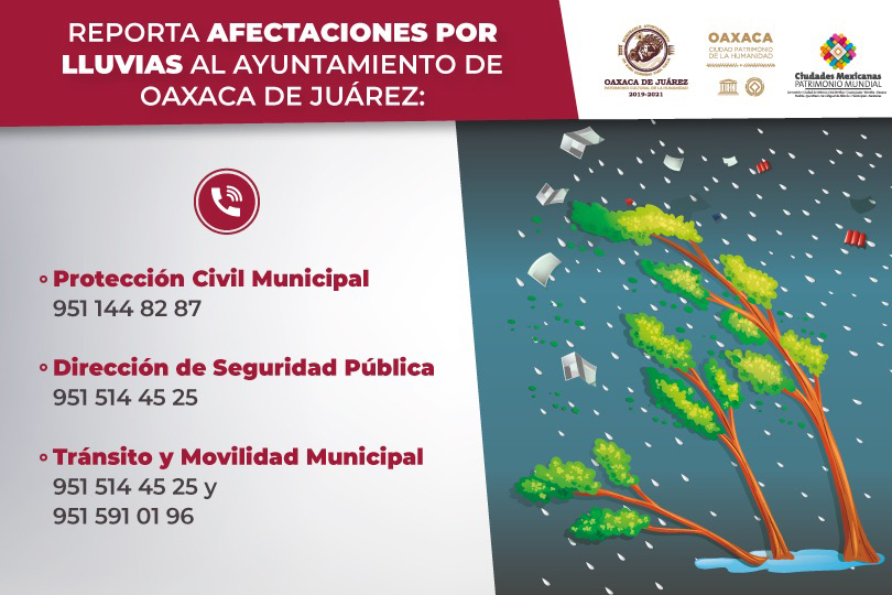 - En caso de suscitarse una incidencia o afectación, la Subdirección de Protección Civil pone a disposición de la ciudadanía el número telefónico 951 144 8491.