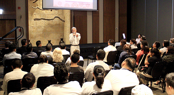 En el Hotel Grand Fiesta Americana, el jefe del Departamento de Formación y Capacitación, Juan Ignacio Hernández Velasco, instruyó al personal de esta empresa al tiempo que habilitó la Unidad Interna de Protección Civil con el objetivo de que los prestadores y prestadoras de servicios estén mejor capacitados para hacer frente a un fenómeno perturbador en sus instalaciones.