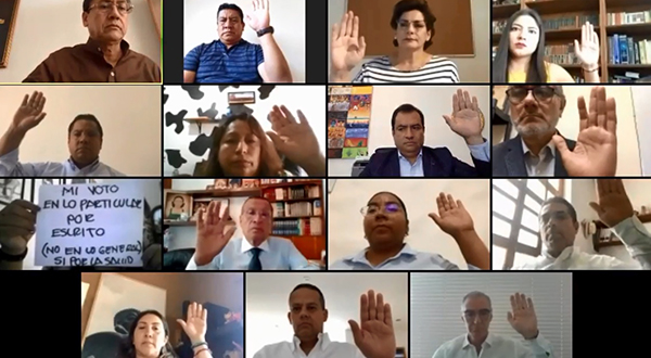 Oaxaca de Juárez, Oaxaca, a 25 de marzo del 2020.- En Sesión Ordinaria de Cabildo, realizada este miércoles a través de videoconferencia, las y los concejales de Oaxaca de Juárez aprobaron por mayoría calificada un punto de acuerdo presentado por el Presidente Municipal, Oswaldo García Jarquín, que establece la suspensión temporal de actividades en salones de fiesta, antros, cantinas, bares, centros nocturnos, cervecerías, mezcalerías, centros botaneros y similares establecidos en la capital del estado.
