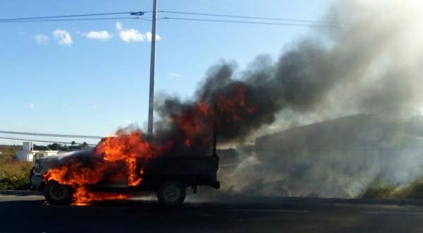 Arde camioneta por falla mecánica