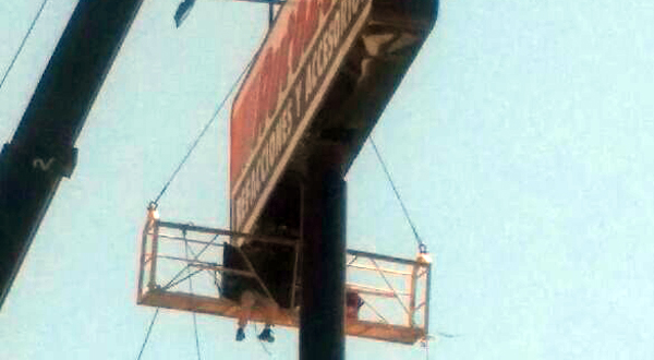 Estos trabajos se realizaban en la plaza Pabellón Salina Cruz, en donde los obreros verticales a bordo de una grúa y sentados sobre una tarima y exponiendo su integridad física desempeñan sus actividades.