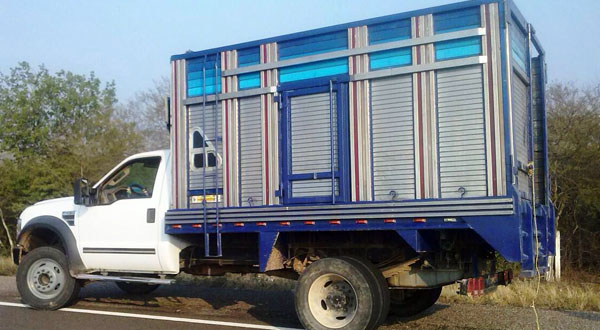 Se trata de la unidad marca Ford, tipo Superduty, cabina blanca y redila gris con azul, con capacidad de cinco toneladas, número de serie3FELF46S98MA34918, sin placas de circulación; misma que fue localizada en la autopista 185 que conduce de Salina Cruz a La Ventosa, a la altura del kilómetro 51, con dirección de Ixtepec a Tehuantepec.