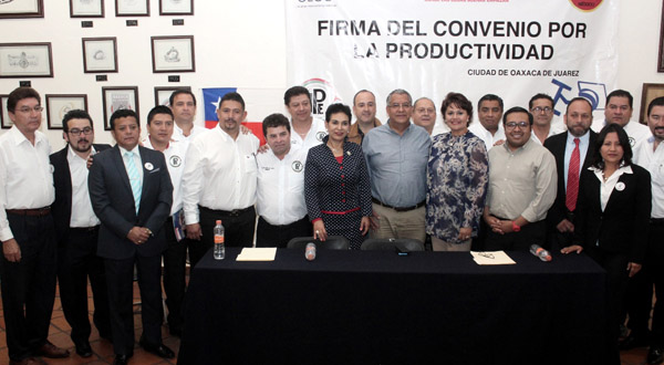 Con la representación del presidente municipal de Oaxaca de Juárez, Javier Villacaña Jiménez, el titular del Consejo de Colaboración Municipal, Claudio Ruiz Solana, atestiguó la firma del convenio para la Productividad de los trabajadores, entre el Instituto Político Empresarial de Oaxaca y Confederación Autónoma de Trabajadores y Empleados de México (CATEM).