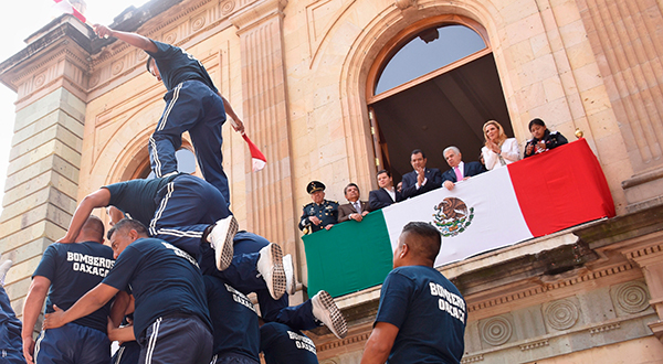 *Oaxaca de Juárez, Oaxaca, a 20 de noviembre del 2019.-Conmemorando el CIX Aniversario del inicio de la Revolución Mexicana, que permitió sentar las bases de las libertades y derechos que hoy tienen las y los mexicanos, el Presidente Municipal de Oaxaca de Juárez, Oswaldo García Jarquín, presenció el desfile cívico-deportivo alusivo a esta fecha, en compañía de la Presidenta Honoraria del DIF Estatal, Ivette Morán, y de la Secretaria Técnica de la Coordinación Territorial para la Construcción de la Paz en Oaxaca, Karina Barón Ortiz.