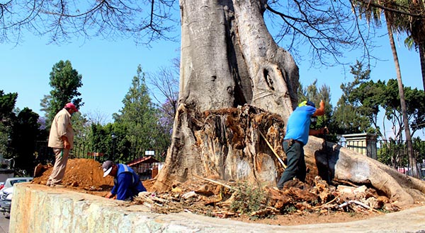 Personal de ambas áreas municipales realizaron trabajos para controlar el hongo ganoderma que afecta al ejemplar, además hicieron la descompactación de la tierra para permitir una mejor filtración del agua, efectuaron el descubrimiento del cuello de la raíz y realizaron una adecuada fertilización para controlar la proliferación de la plaga que lo daña.