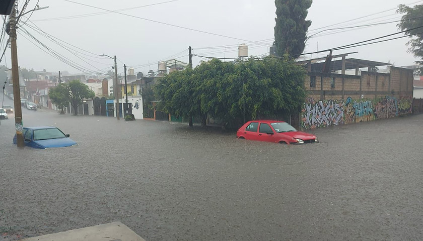 Debido a la lluvia registrada en las últimas horas en la Zona Metropolitana de Oaxaca, también se presentó encharcamiento en avenida Lázaro Cárdenas esquina Paraíso en la colonia Bosque Sur, en el municipio de Santa Lucía del Camino.