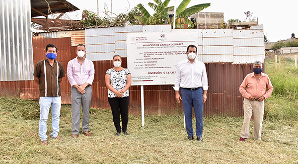 Oaxaca de Juárez, Oaxaca, a 29 de septiembre 2020.- Al encabezar la inauguración de una obra de construcción de red de agua potable en la calle 19 de agosto, en la colonia 9 de Mayo de la agencia de Pueblo Nuevo, el Presidente Municipal Oswaldo García Jarquín destacó que, con la entrega de obras prioritarias en la ciudad, se demuestra el cumplimiento del compromiso de la Cuarta Transformación con Oaxaca de Juárez, que es brindar atención y mejorar la calidad de vida de la población más vulnerable.