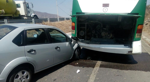 Un automóvil se fue a impactar en la parte posterior de un camión de pasaje en la carretera federal 190 que comunica al Istmo de Tehuantepec y dos personas resultaron con lesiones, siendo atendidos en el lugar del percance, en el libramiento de Santa María El Tule.