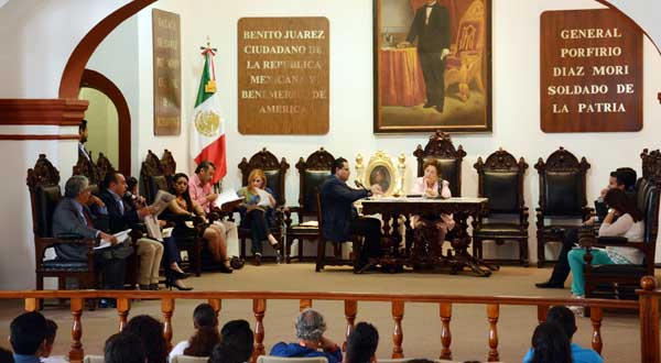 En el marco de la sesión ordinaria de cabildo de este jueves, presidida por la regidora Rosa Silvia García Pineda, el pleno de cabildo municipal autorizó por unanimidad realizar un respetuosos pero urgente exhorto al secretario de Gobernación, Miguel Ángel Osorio Chong para considerar la posibilidad de establecer una mesa concertación o conciliación con especialistas en temas de conflictos y construcción de paz.