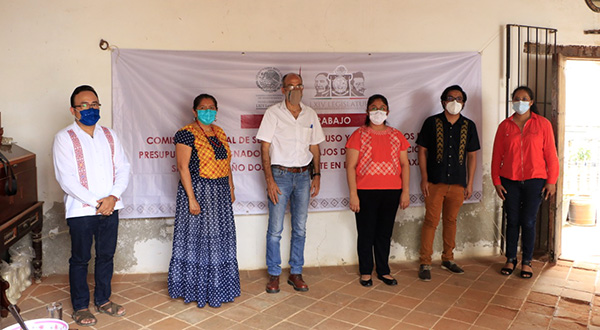 En la Casa Museo Shunashi, en la ciudad de Santo Domingo Tehuantepec, el diputado presidente de la Comisión, Pável Meléndez Cruz, y las legisladoras, Victoria Cruz Villar, y Gloria Sánchez López, sostuvieron un encuentro de trabajo con David Cervantes Peredo, subsecretario de Sedatu y Marisol Cruz López, encargada del Programa Nacional de Reconstrucción (PNR) en el Etado de Oaxaca.