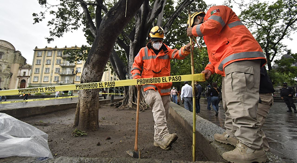 Ayuntamiento de Oaxaca acordona áreas del Zócalo ante posibles afectaciones en el arbolado por lluvias