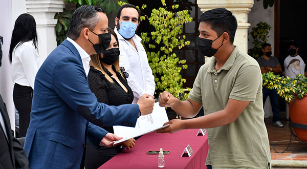 “Ustedes supieron aprovechar una oportunidad que, sin duda, será un escalón que les permitirá seguir avanzando en su preparación académica”, destacó el Síndico Hacendario en compañía del subdirector de Juventud, Deporte y Recreación, José Manuel Vichido Luna y del regidor de Desarrollo Turístico y de Desarrollo Comunitario y Asuntos Indígenas, Luis Zárate Aragón.