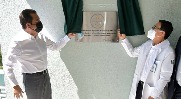 “La develación de esta placa está considerada como la más alta distinción, el más alto honor que se otorga por parte del Estado Mexicano a los héroes, nada más; y esos héroes aquí están en este hospital, son todas y todos los trabajadores de todas las categorías que, como mérito desde que inició la pandemia, han estado al pie del cañón, siendo el mayor ejemplo de la entrega de servicio en beneficio de la población”, aseveró.