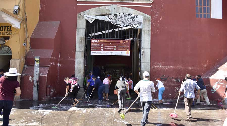 Ayuntamiento de Oaxaca y locatarios se unen para limpiar calles adyacentes a mercados