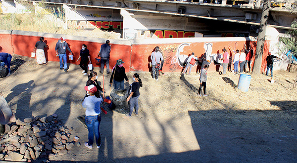 Desde las 8:00 horas, las y los vecinos de esta demarcación, así como servidoras y servidores públicos municipales e integrantes del comité de padres de familia de la Escuela Primaria “Hermanos Flores Magón”, se dieron a la tarea de deshierbar las zonas aledañas a la institución, recolectar residuos sólidos, limpiar y pintar los muros de la parte interna del Puente “Porfirio Díaz”, para brindar a este espacio una nueva imagen y generar mayor seguridad.