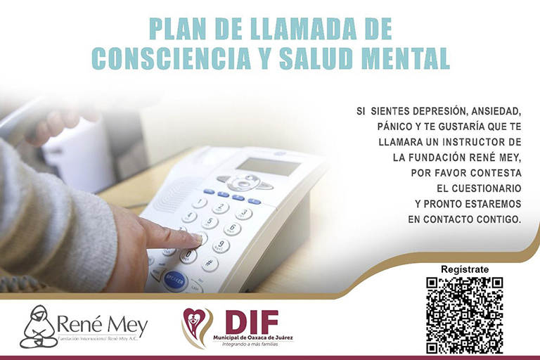 Oaxaca de Juárez, Oaxaca a 12 de abril 2020.- Preocupados por la salud emocional de las familias capitalinas durante la contingencia por la pandemia de COVID-19, el DIF Municipal de Oaxaca de Juárez, que encabeza la Presidenta del Consejo Consultivo, Patricia Benfield López, y la Fundación René Mey, ponen a disposición de la ciudadanía el “Plan de Llamada de Consciencia y Salud Mental” el cual brinda atención y orientación telefónica con personal capacitado.