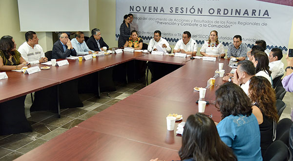 A la sesión acudieron el presidente de San Juan Bautista Valle Nacional, Reynaldo Magaña y en representación de la presidenta Juanita Cruz Cruz, la síndica hacendaria de Huajuapan de León, Mayra Serrano, municipios que fueron sede de alguno de los ocho foros realizado, cuyo objeto fue prevenir y combatir la corrupción en el ámbito del servicio público municipal.