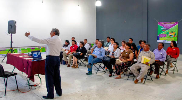 Durante la capacitación, Diego Vásquez Díaz, responsable de arbovirosis de la Jurisdicción Sanitaria número 1 de los Servicios de Salud de Oaxaca, compartió con las y los asistentes la importancia de eliminar criaderos de larvas, a través del deshierbe de jardines y terrenos baldíos, la limpieza de azoteas y patios, así como tapar correctamente los depósitos de almacenamiento de agua (cisternas, tinacos, tambos y cubetas).