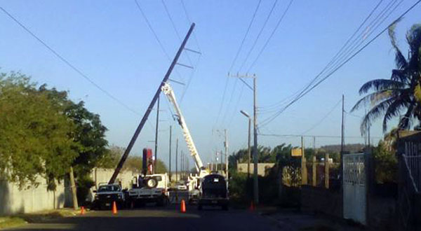 De acuerdo con el coordinador de Protección Civil, Carlos Benjamín García Pacheco informó que debido a las rachas de vientos que alcanzan los 70 y 80 kilómetros por hora causó afectaciones en el poste de madera y el cableado que transporta la línea de alta tensión propiedad de la Comisión Federal de Electricidad.