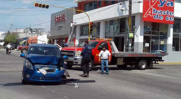 Los hechos se registraron a las 10:45 horas, cuando una unidad marca Chevrolet tipo spark con placas de circulación txf-51-73 del Estado de Puebla y la otra una camioneta Chevrolet de grúas Valbuena con placas de circulación 930-ec-4 del Estado de México, se impactaron al pasar por los semáforos que se encuentran en la intersección de las avenidas.