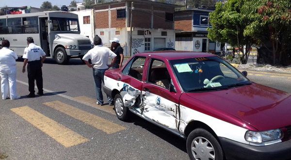 SALINA CRUZ, OAX.- Un aparatoso accidente entre un autobús propiedad de la Secretaría de Marina y un taxi de la Confederación de Trabajadores de México, dejó un saldo de una persona con lesiones leves y daños por más de 10 mil pesos.