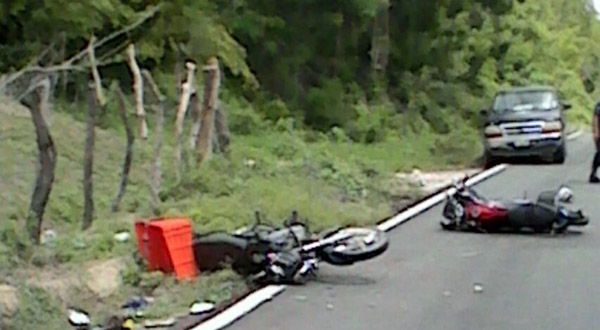 De acuerdo con el reporte de la policía, los hechos ocurrieron a las 11.30 horas de ayer cuando chocaron dos motocicletas, una de ellas conducida por Hewer Hernández Cruz de 31 años de edad que iba acompañado de su familia y otra tripulado por Luis Alberto Domínguez López de 18 años.