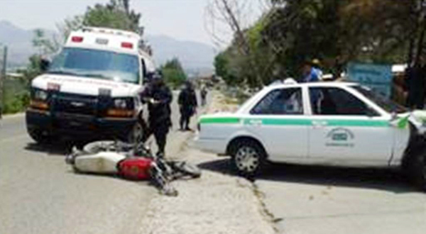 Huajuapan de León, Oax. – Un hombre terminó en el hospital luego de impactar su motocicleta contra un vehículo del servicio público de alquiler en esta ciudad. El reporte fue registrado a las 13:15 horas.