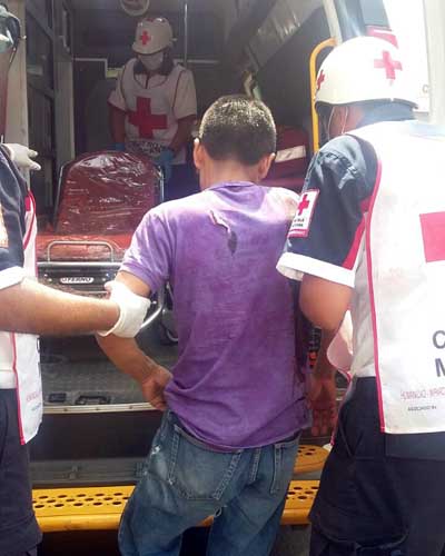Paramédicos de la Cruz Roja fueron movilizados al lugar donde procedieron a auxiliar al herido, a quien canalizaron al hospital civil de la ciudad capital, donde recibe asistencia médica.
