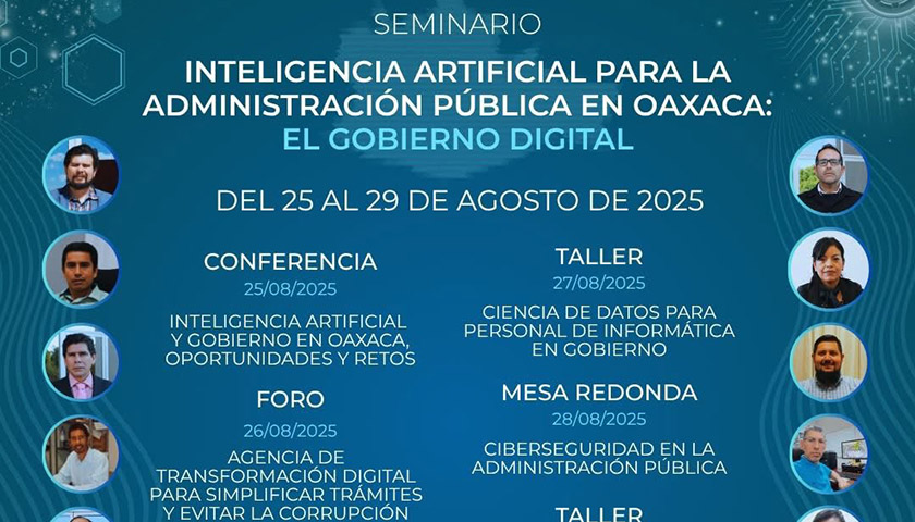 Algunos de los temas que se abordarán son: Inteligencia Artificial y gobierno en Oaxaca, oportunidades y retos; Transformación digital para simplificar trámites; Aplicaciones de IA en la administración pública; Ciencia de datos para personal de informática en gobierno; Ciberseguridad en la administración pública.