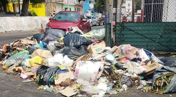 Apenas este miércoles en que el personal de limpia culminó con sus actividades laborales, no tardó ni media hora y las calles nuevamente volvieron a verse cubiertas por montículos de basura que van desde cartón, restos de comida, bolsas, envases de plástico y vidrio.