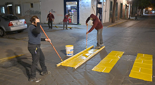 Con pintado de cruces peatonales, Ayuntamiento garantiza seguridad vial en el Centro Histórico
