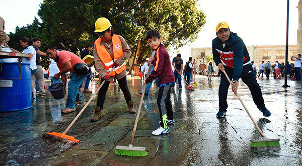 - Cientos de personas acudieron con herramienta en mano para unirse a la tarea de preservar el Centro Histórico de la ciudad capital.