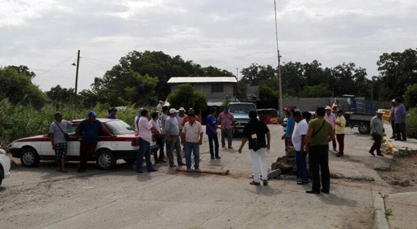 Estos chóferes bloquean el acceso que comunica a Tehuantepec y el otro que está contigua al barrio de Vixhana, en donde atravesaron troncos y sus unidades de motor.