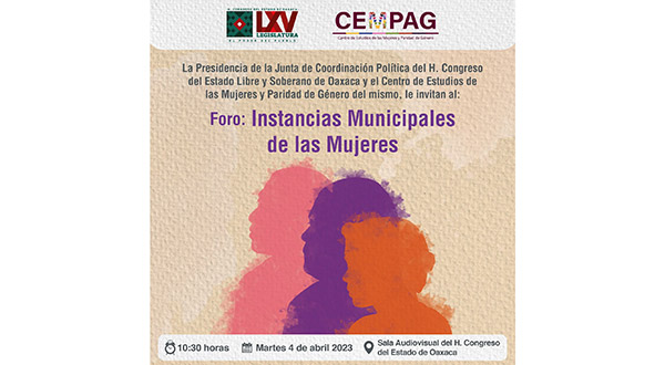 Congreso de Oaxaca realizará Foro de Instancias Municipales de las Mujeres