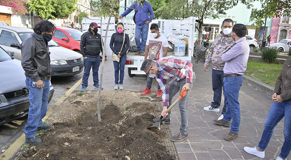 “Agradecemos mucho al Presidente Municipal y a su equipo de trabajo por la oportuna intervención de la jardinera y la siembra de estos árboles en este espacio público”, indicó Gómez Conzatti al constatar la plantación del árbol de chicozapote.