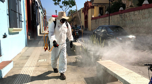 Oaxaca de Juárez, Oaxaca, a 15 de abril de 2021.- Con el reiterado compromiso de mitigar riesgos sanitarios en los espacios públicos de la ciudad, ante la pandemia de COVID-19, el Ayuntamiento de Oaxaca de Juárez, a través de la Coordinación Ejecutiva del Centro Histórico, ha realizado 34 acciones de saneamiento y desinfección en espacios públicos, clínicas, centros de salud, hospitales y calles de la ciudad capital, en el periodo del 7 al 14 de abril 2021.
