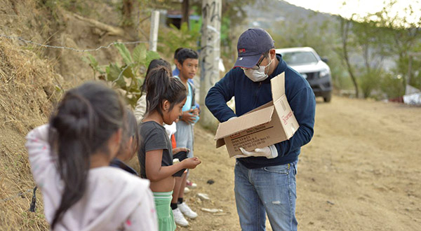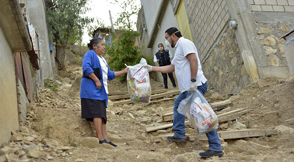 Oaxaca de Juárez, Oaxaca, a 7 de mayo de 2020.- Con el compromiso de dar prioridad a la protección de la salud y aminorar el impacto económico ocasionado por la emergencia sanitaria, durante el día número 26 de la ruta del Programa de apoyo emergente a familias oaxaqueñas ante la contingencia por COVID-19, servidores públicos del Ayuntamiento de Oaxaca de Juárez se trasladaron a la colonia Lomas Panorámicas, donde entregaron apoyos y brindaron orientación a las familias asentadas en polígonos de alta y muy alta pobreza.