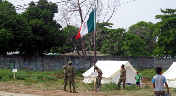 HUILOTEPEC. Con la finalidad de atender a las familias que fueron damnificados con el terremoto que devastó sus hogares, el personal de la Secretaría de Marina en coordinación con el ayuntamiento instaló refugios temporales.