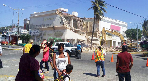 SALINA CRUZ. Con maquinaria pesada comenzaron los trabajos de demolición del edificio donde albergó a la tienda Coppel que resultó dañado por el terremoto del 7 de septiembre.