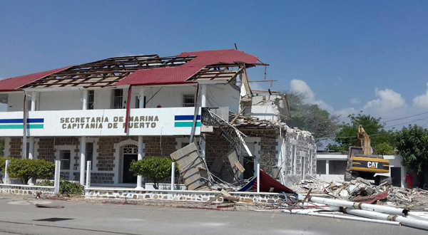 Con maquinaria pesada comenzaron los trabajos de demolición del área desde donde por más de ocho décadas fue el sitio donde los marinos realizaban los trámites administrativos y se tenía el control de la flota naval al interior y exterior del puerto de Salina Cruz.