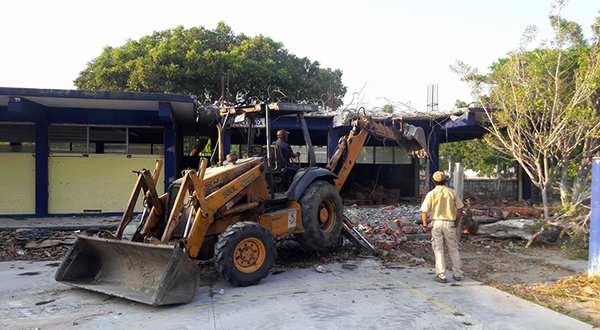 Se prevé que en un plazo no mayor de una semana ya estén demolidas las aulas, dirección, sanitarios y otras áreas con que cuenta el inmueble de la secundaria 18 de marzo.