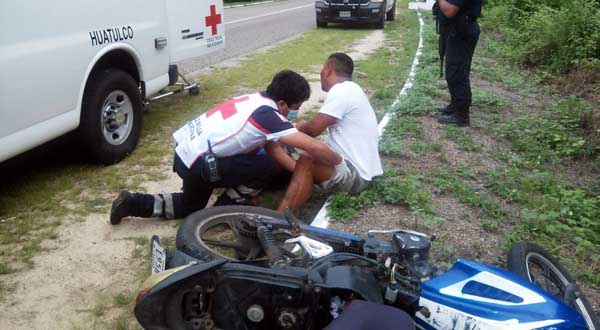 El conductor de una motocicleta, originario de Santiago Astata resultó con lesiones al derrapar co su unidad de motor en Bahías de Huatulco y quedó encamado en la Cruz Roja del lugar, donde recibe asistencia médica.