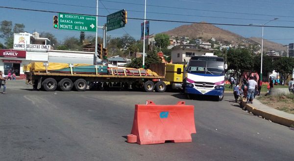 Para exigir la libertad inmediata de su dirigente que se encuentra detenido desde hace unos meses, integrantes del Frente Popular ‘14 de Junio’ bloquean la circulación en la carretera federal 175 a la altura del crucero de la ‘Y’, así como el crucero de la ex Garita y la rotonda de Juárez en Santa Cruz Xoxocotlán.