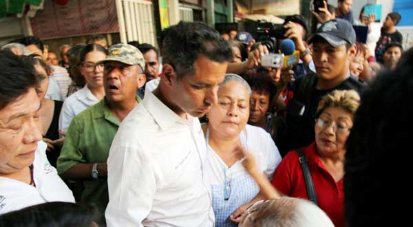 Al salir del recorrido por las naves del mercado, el ejecutivo estatal fue abordado por los locatarios que se instalaron de forma temporal al exterior de éste, exponiéndoles su preocupación y la necesidad de un nuevo mercado.
