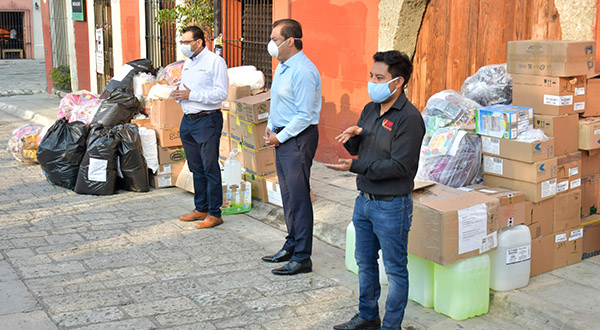 Oswaldo García detalló que esta donación beneficiará a los hospitales de la Niñez Oaxaqueña “Dr. Guillermo Zárate Mijangos”, General “Dr. Aurelio Valdivieso” y Regional de Alta Especialidad de Oaxaca con medicamentos, materiales sanitarios como gel antibacterial, alcohol, líquidos desinfectantes, cubrebocas y caretas para brindar a las y los médicos los instrumentos necesarios para desempeñar de forma adecuada su labor.