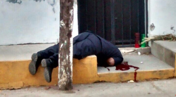 Las balas acabaron con su vida y quedó boca abajo el policía, mientras que los sicarios escaparon de las escena del crimen.
